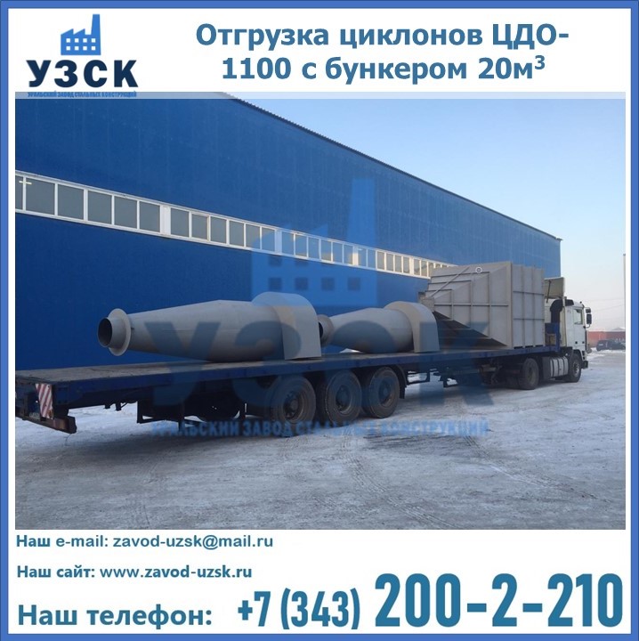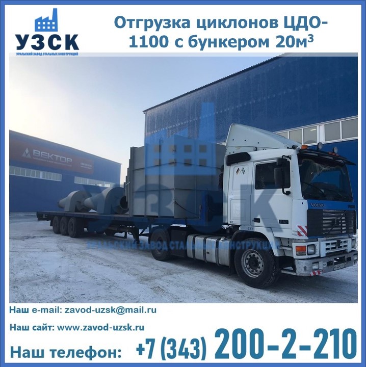 Циклоны ЦДО-1100 с бункером на 20 кубов были отгружены в декабре 2018 года в г. Новосибирск Дербент.