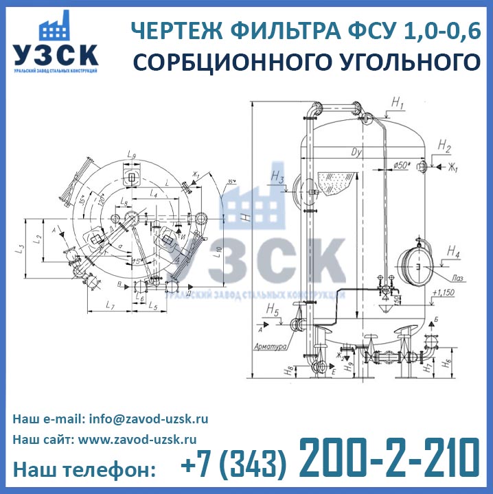 Наш завод (Уральский завод стальных конструкций) является производителем угольных фильтров, сам осуществляет изготовление и реализацию выпускаемой продукции. Приобретая фильтры ФСУ-1.0-0.6 в Дербенте от производителя, Вы приобретаете оборудование без наценок всевозможных посредников, а также значительно экономите свое время. Фильтры ФСУ1.0-0.6 завода УЗСК – это гарантия качества, кратчайшие сроки изготовления и цена, которая Вам понравится.